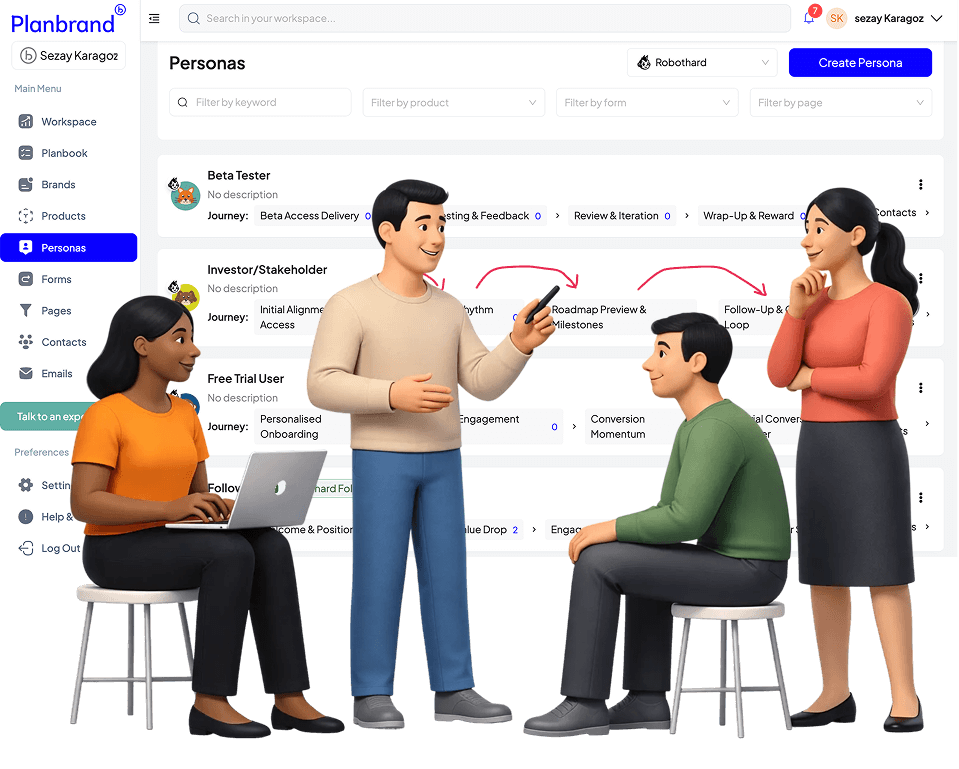 Define who you serve and how they move through your brand. Personas connect pages, forms, products, and tasks so each action happens at the right time for the right person.